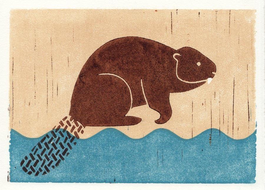 BEAVER HAND-CARVED LINOCUT ILLUSTRATION ART PRINT BY ANNA SEE