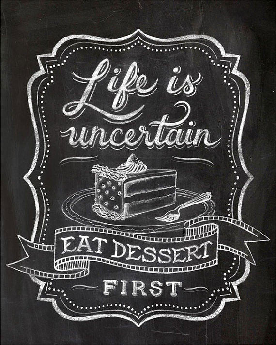 "LIFE IS UNCERTAIN. EAT DESSERT FIRST" CHALKBOARD TYPOGRAPHY ILLUSTRATION GICLEE ART PRINT BY ANNA SEE