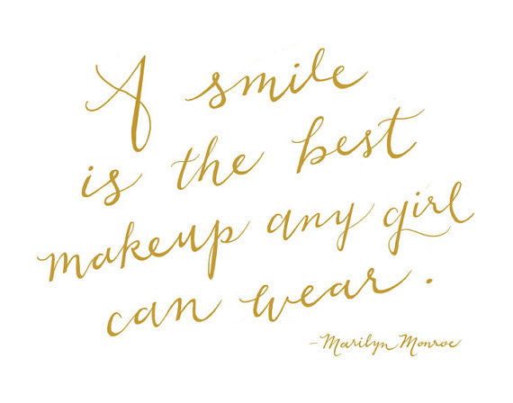 "A smile is the best makeup any girl can wear." Marilyn Monroe, Typographic Calligraphy Print of my handwriting.