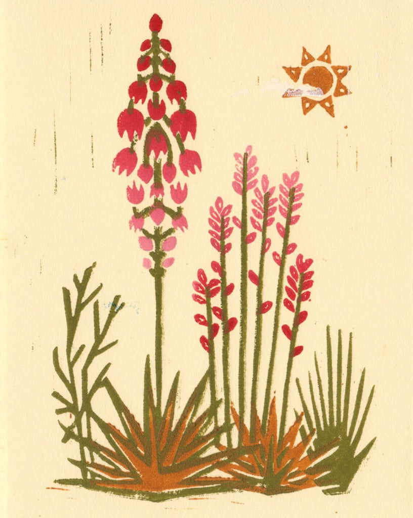 This fine art postcard set of 5 desert inspired linoprint images, created with hand-carved linoleum blocks, of cactus, prickly pear, yucca plant, Joshua tree, and other American Southwest scenery, is part of an ongoing series depicting the beautiful nature and scenery of my desert surroundings. Blank on back, 4 x 6 inches and perfect for mailing!