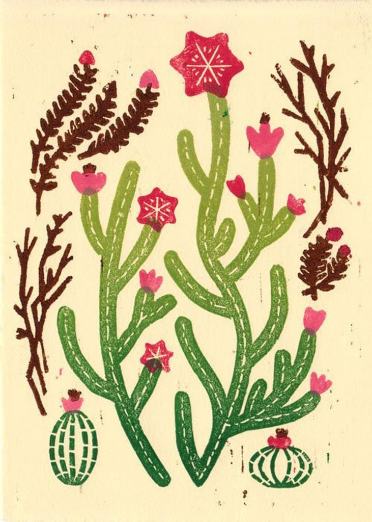 FINE ART DESERT CACTUS LINOPRINT REPRODUCTION POSTCARD SET - BY ANNA SEE